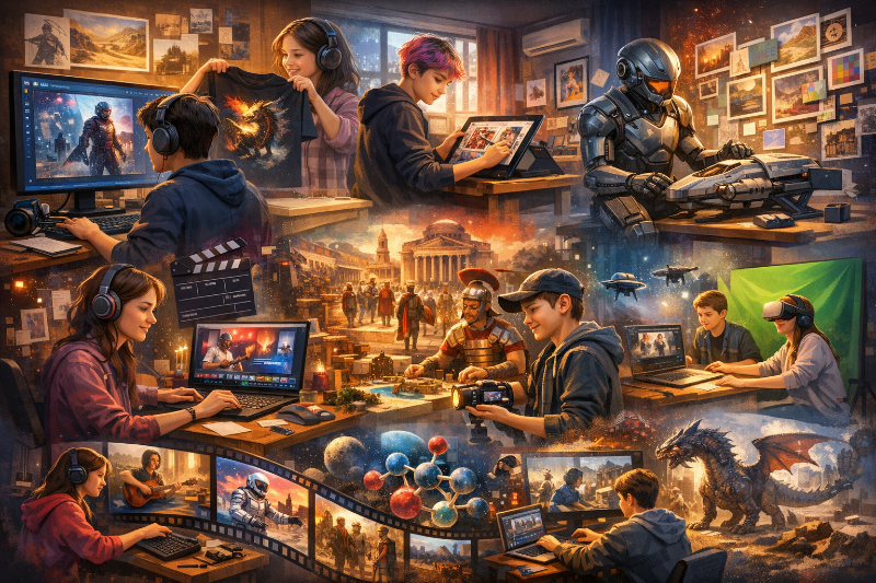 • Визуализация мечт и миров. Можно снять трейлер к собственной книге, которую подросток только начал писать, или "оживить" локацию из любимой игры.